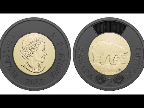 The black colour is the result of a treatment applied to the standard nickel-plated steel $2 circulation coins. This process maintains the same composition as a conventional Canadian “Toonie” coin and was introduced for the very first time on a coin chosen as a way to acknowledge the passing of the late Queen Elizabeth II.