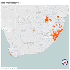 - Real‑world crisis response evidence: Over the period 9-18 July 2021, social unrest affected parts of South Africa, mainly concentrated in the Kwa-Zulu Natal and Gauteng provinces. The riots that attended this crisis resulted in extensive damage to the infrastructure of Commercial Bank branches, ATM’s and Retailers. Each infrastructure attack site, or hotspot, is depicted within Exhibit 2 below.Refer to Exhibit 2 (attached image): “A map depicting ‘ hotspots’ or the location of each (infrastructure) attack as sourced from News24 (the original and a description link includes a description o of what took place at each attack site). Source: https://specialprojects.news24.com/-unrestsa-map-hotspots-looting-kzn-gauteng/index.html